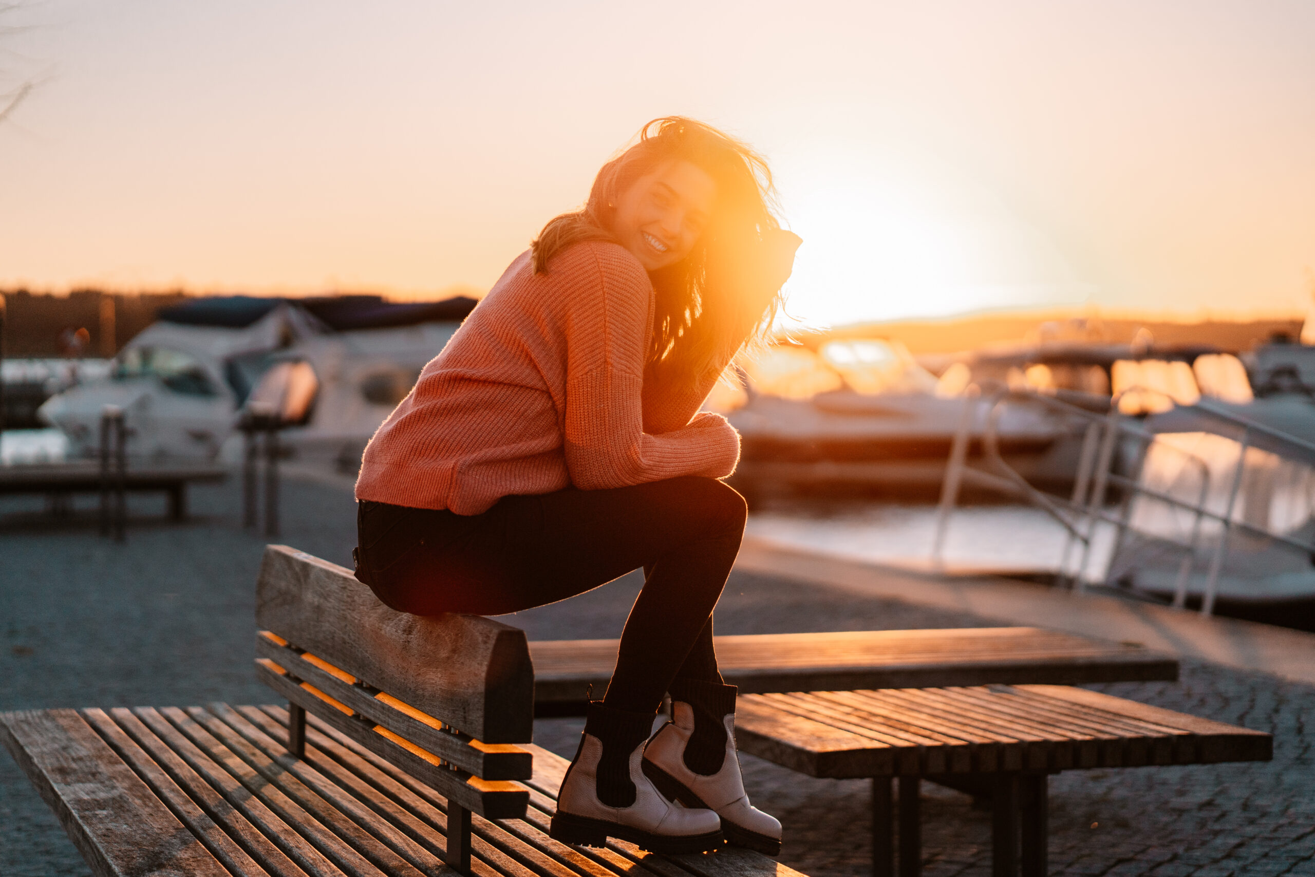 Während des Shootings haben wir die malerische Altstadt, den idyllischen Hafen und die weiten Landschaften rund um die Müritz als Kulissen genutzt. Besonders die Kombination aus historischem Flair und unberührter Natur hat uns inspiriert, verschiedene Szenarien auszuprobieren. Die Herbstfarben und das wechselhafte Novemberwetter verliehen den Aufnahmen eine ganz besondere Atmosphäre. Nebelschwaden über der Müritz und das sanfte Licht der tiefstehenden Sonne schufen eine mystische Stimmung, die perfekt zu Anna Lenas natürlicher Ausstrahlung passte.